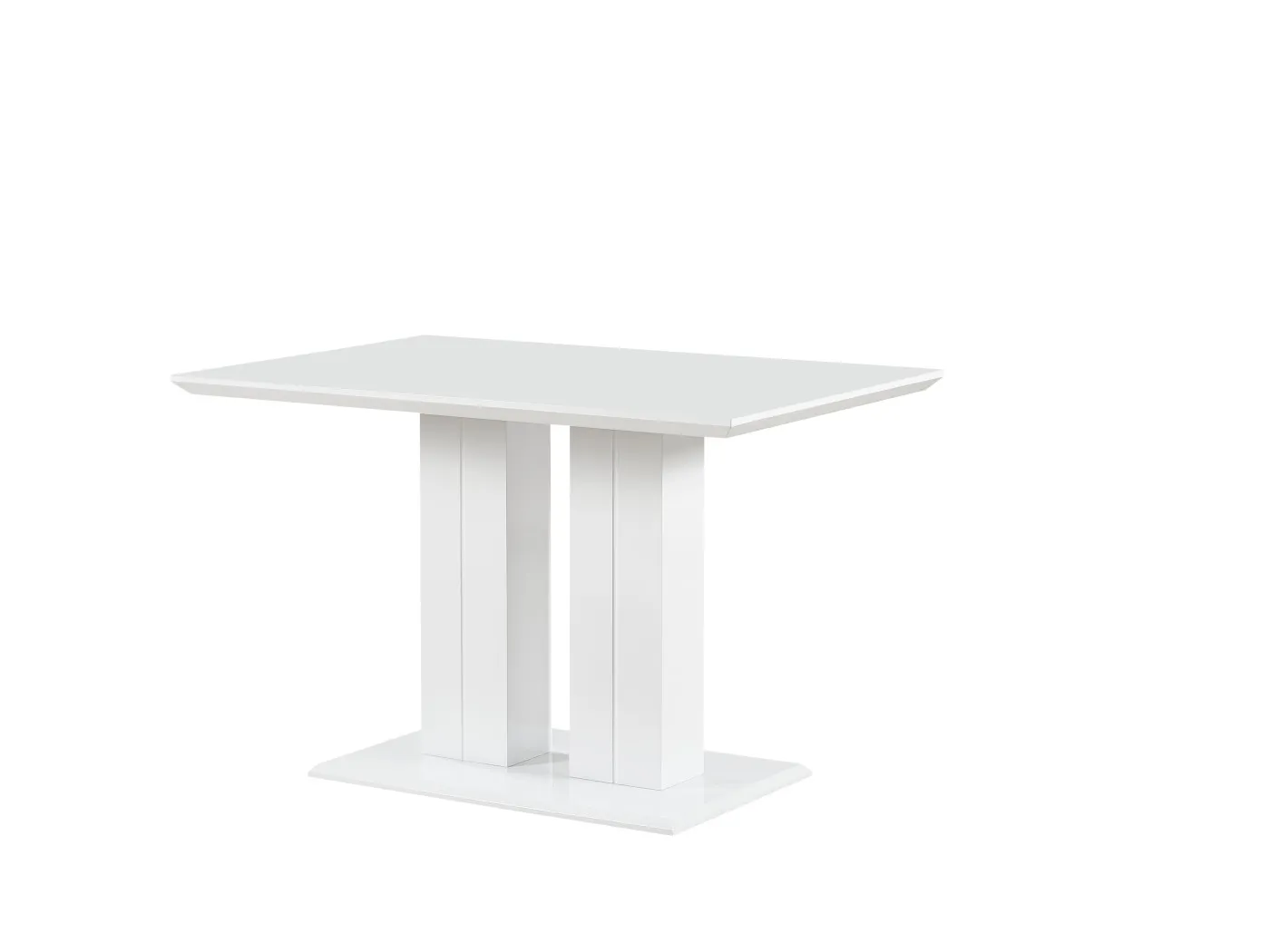 Moderna jedilna miza v beli barvi visok sijaj. Miza ima sredinsko nogo in je fiksna. Izdelana je iz materiala MDF.
