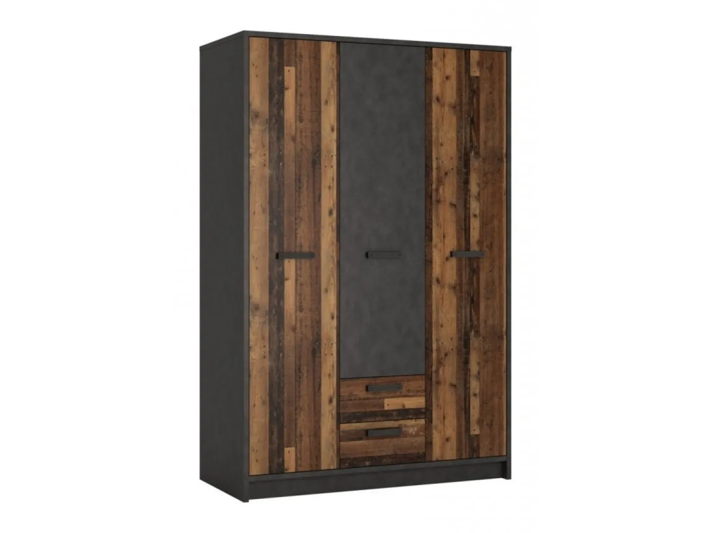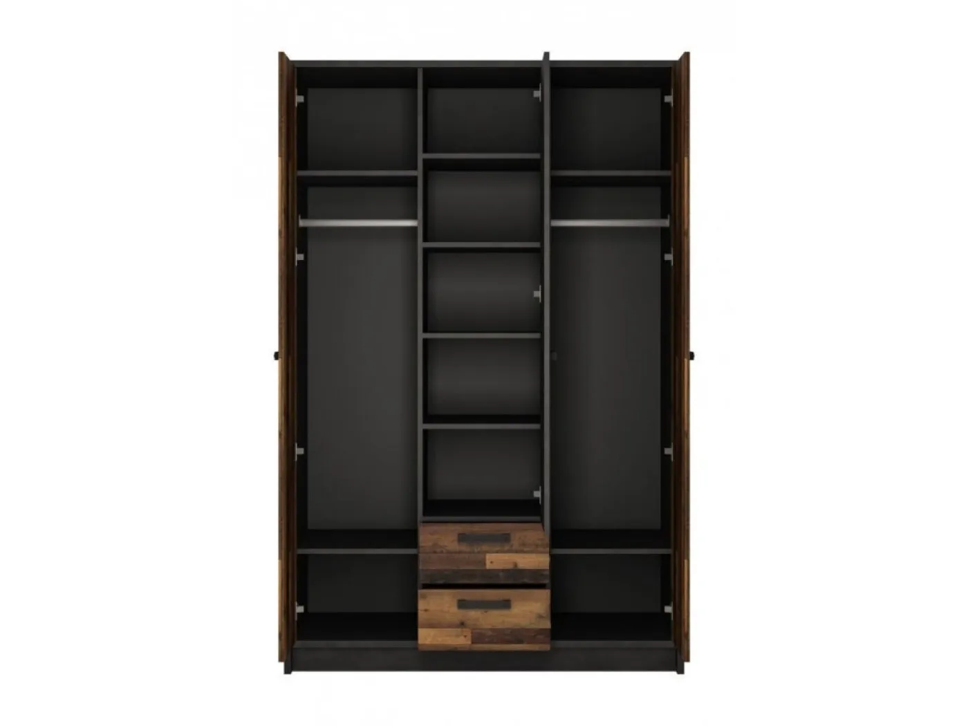 - omara NUBS02 (dimenzija 128x60x195 cm) - Notranjost je razdeljena na 3 dele. Levi in desni del sta opremljena s po 2 dodatnimi policama in po 1 palico za obešanje. Sredinski del ponuja 4 police in 2 predala.