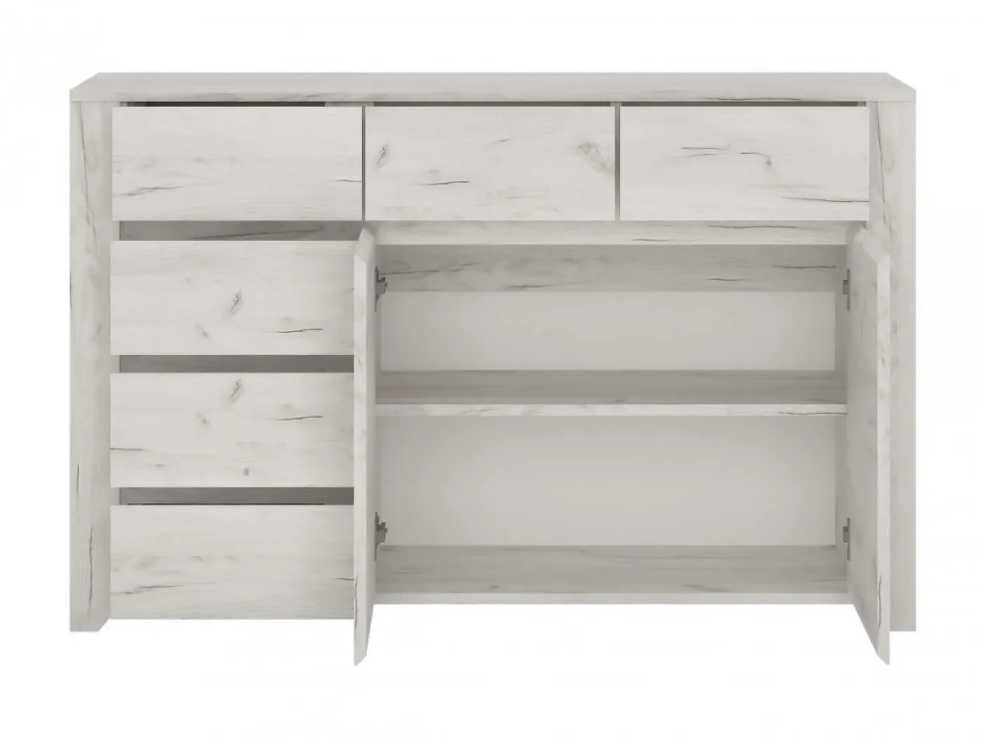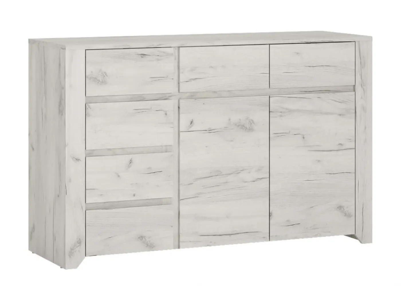 Komoda Angel typ 42 je brezčasen kos pohištva, ki nudi obilo prostora za shranjevanje. Izdelana je iz kakovostne iverne plošče v barvi beli hrast, ki je enostavna za vzdrževanje in odporna na praske. Komodo odlikuje tudi eleganten brezročajni dizajn.