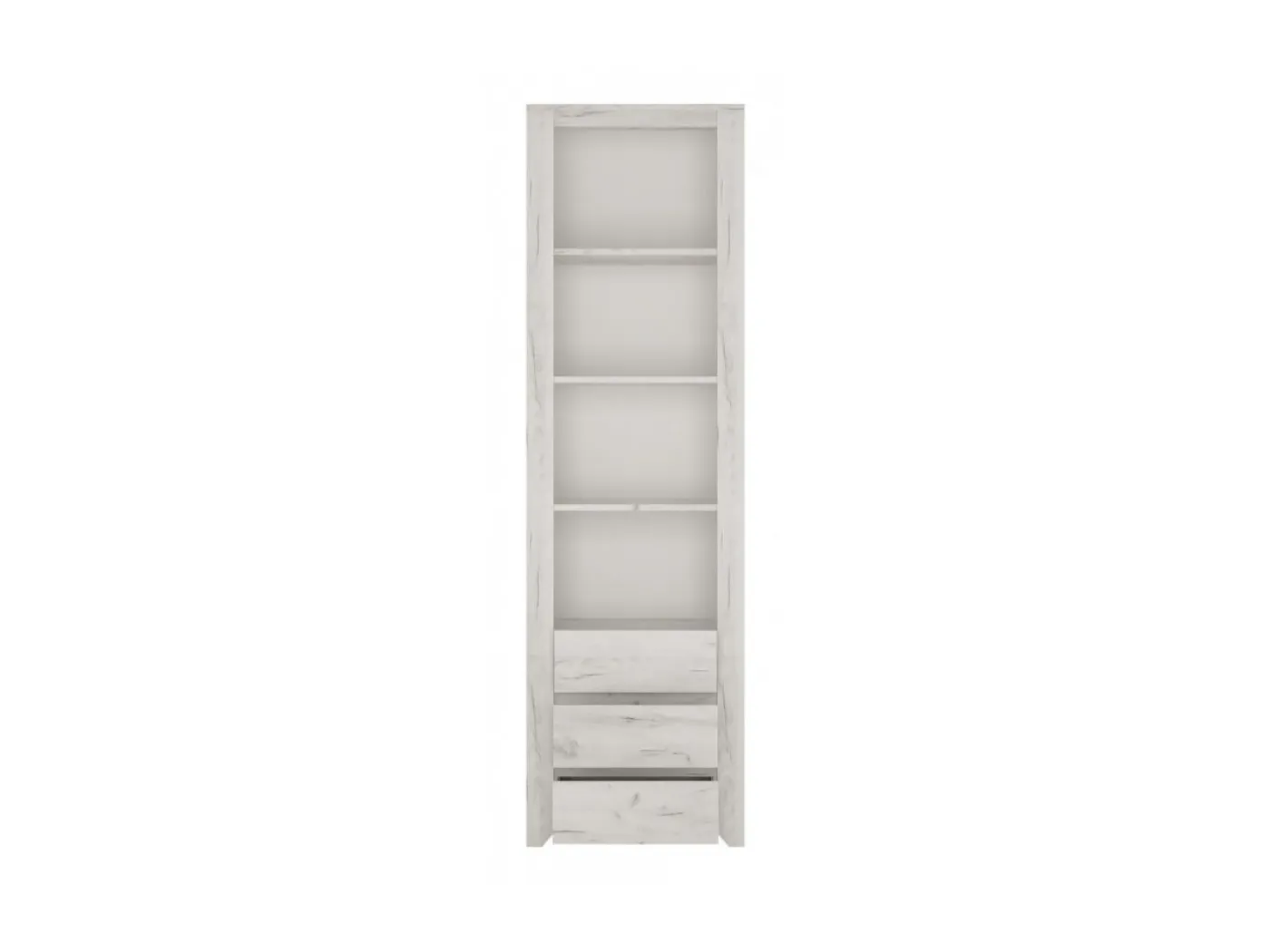 Odprt poličnik Angel typ 11 nudi praktičen prostor za shranjevanje, hkrati pa s svojim dizajnom tudi popestri prostor. Izdelan je iz kakovostne iverne plošče v barvi beli hrast, ki je enostavna za vzdrževanje in odporna na praske. Dodatno eleganco omari nudi brezročajni dizajn.