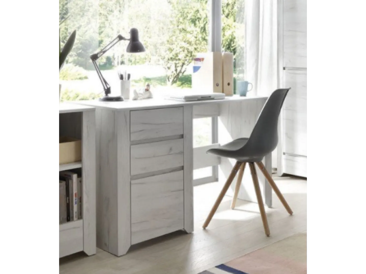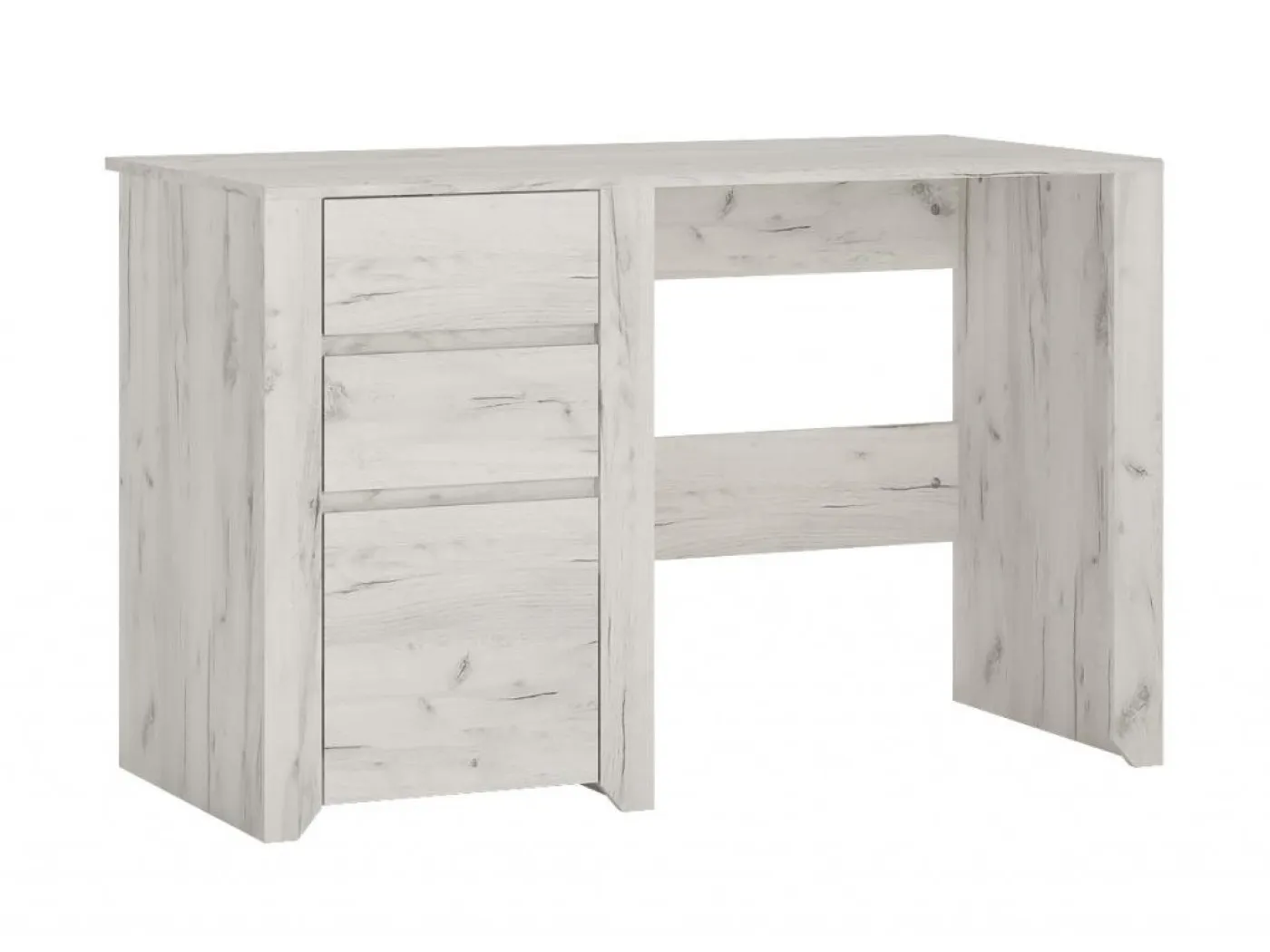 Minimalistična pisalna miza Angel združuje kakovostno izdelavo, nevtralen dizajn in praktične rešitve. Miza je izdelana iz kakovostne iverne plošče v barvi beli Craft hrast. Površina mize je odporna na poškodbe in praske.