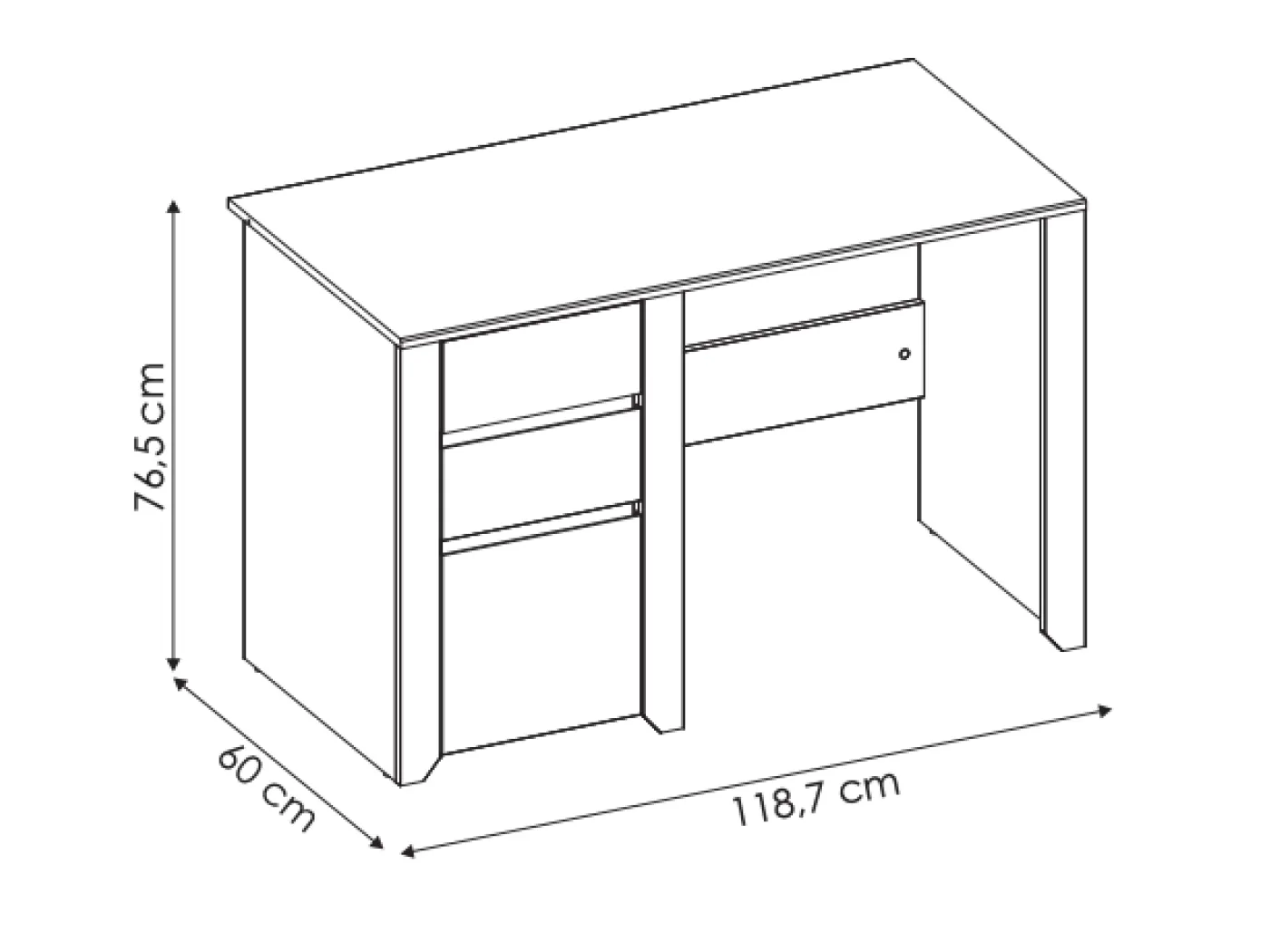 Miza je opremljena s 3 predali, 2 sta plitvejša, en pa je globji.