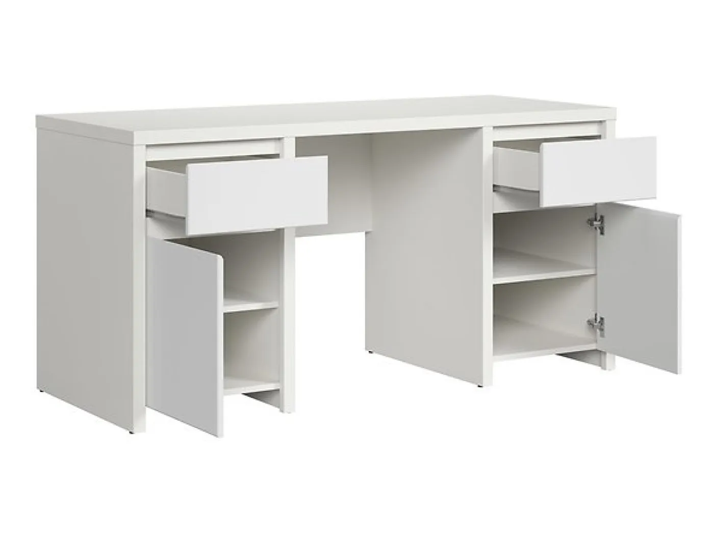 Pisalno mizo Kaspian 160 odlikuje prostornost in praktičnost. Zaradi svojega nevtralnega dizajna se lepo vklopi v prav vsak ambient. Mizna plošča dimenzije 160x65 cm nudi dovolj prostora tudi za bolj zahtevno delo. Na vsaki strani mize se nahaja tudi praktičen prostor za shranjevanje z po enim predalom na vsaki strani ter z vrati zaprtim delom, v katerem se nahaja po 1 dodatna polica.