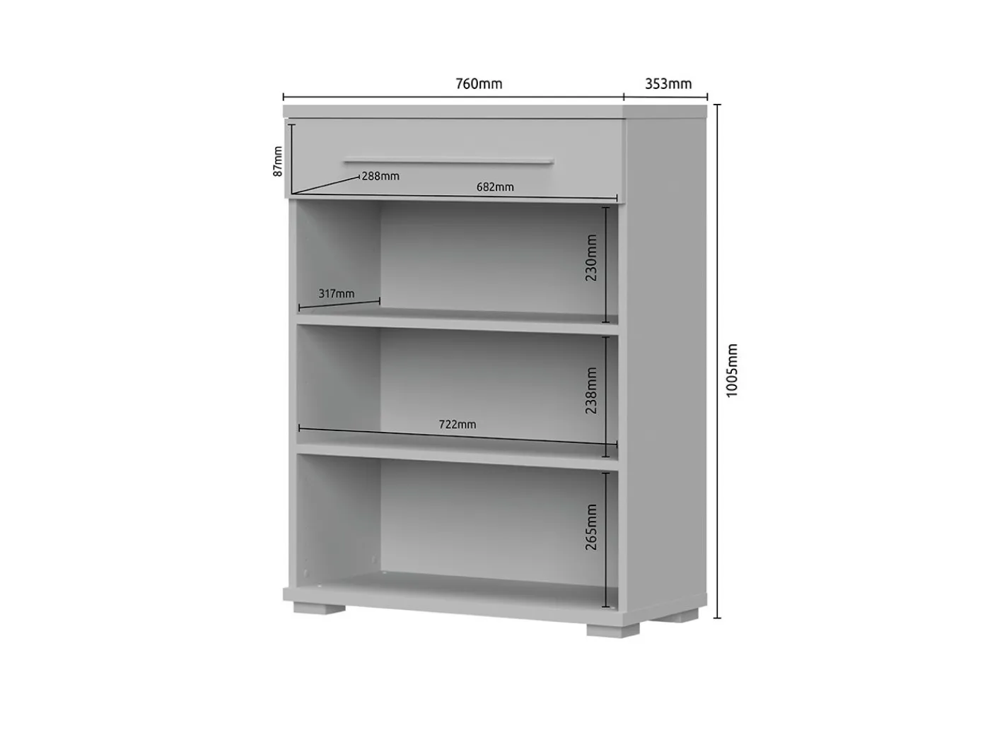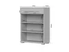 Spodnji del omarice je zaprt z dvoje vrat, v notranjosti pa se nahajata 2 dodatni polici. Zgornji del omarice je opremljen s širokim predalom, ki je opremljem z vodili z mehkim zapiranjem.