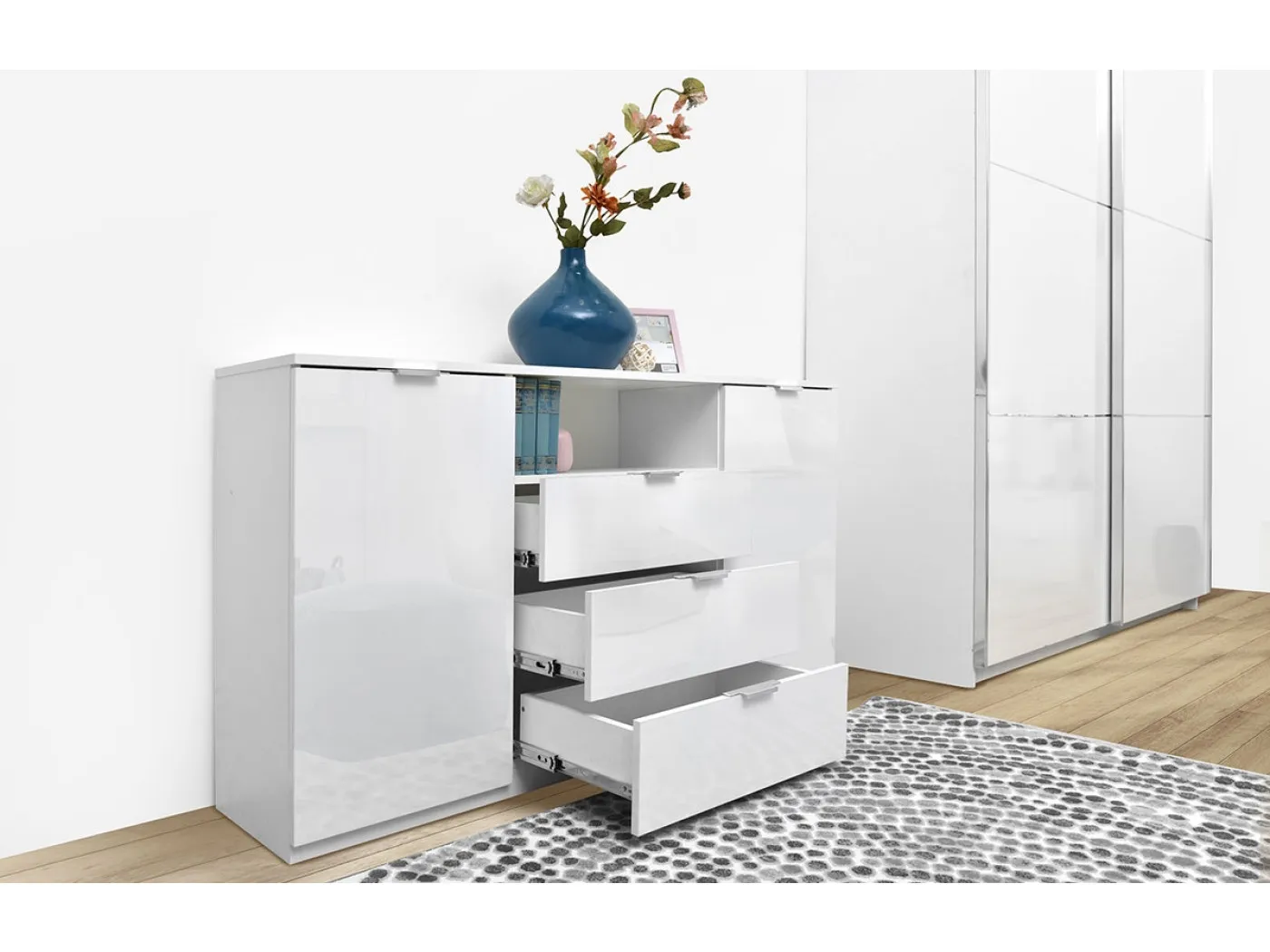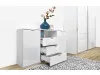Komoda Elegance 150 združuje eleganten dizajn, kakovostno izdelavo in praktičen prostor za shranjevanje. Obod omarice je izdelan iz iverne plošče debeline 18 mm v mat beli barvi, ličnice pa so v sijaj beli barvi. Komodo lahko uporabite kot samostojen element, odlično pa se kombinira z ostalimi elementi iz programa Elegance.