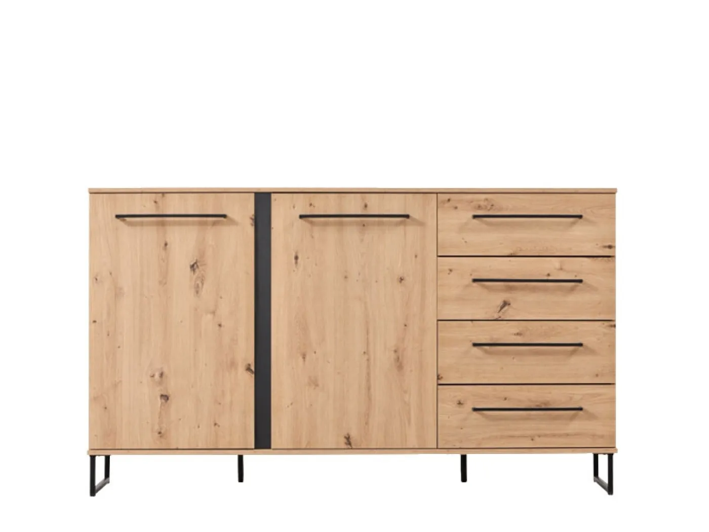Komoda Sardinia 3K4F združuje modern industrijski dizajn in obilico praktičnega prostora za shranjevanje. Izdelana je iz kakovostne iverne plošče v barvi hrast Artisan in stoji na kovinskih nogah.