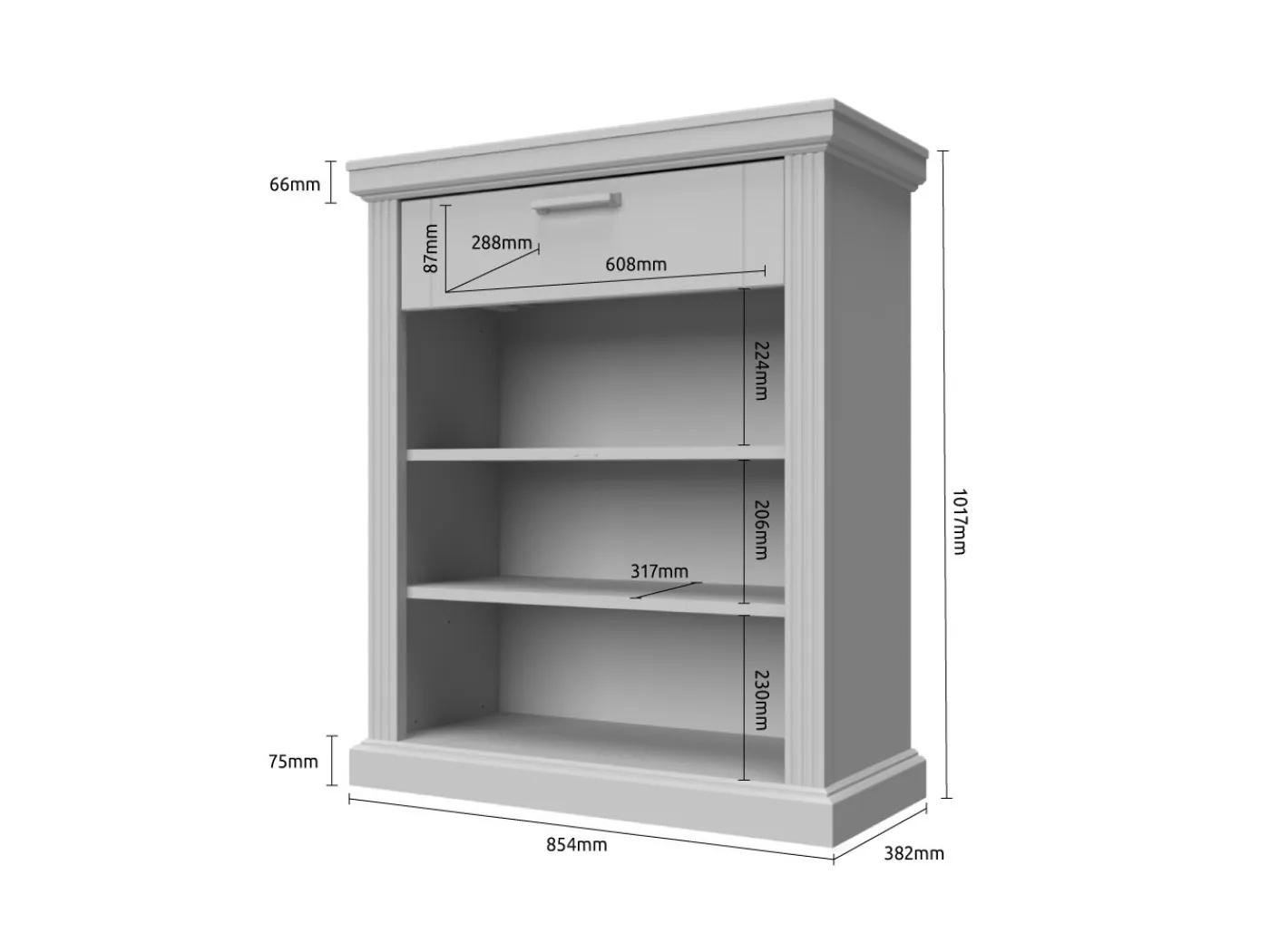 Zgoraj je predal ki je opremljen z mehanizmom za mehko zapiranje. V notranjosti se nahajata 2 polici. Vrata so opremljena z mehanizmom za mehko zapiranje.