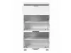 Na vrhu omarice se nahaja 1 predal za shranjevanje drobnih predmetov. Spodnji del sestavljata 2 predela zaprta s vrati na kip in skupaj nudita 4 police za shranjevanje čeveljev.