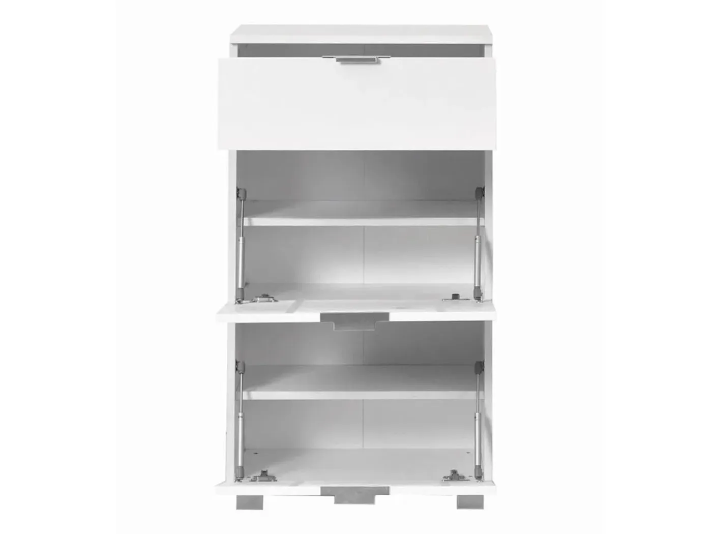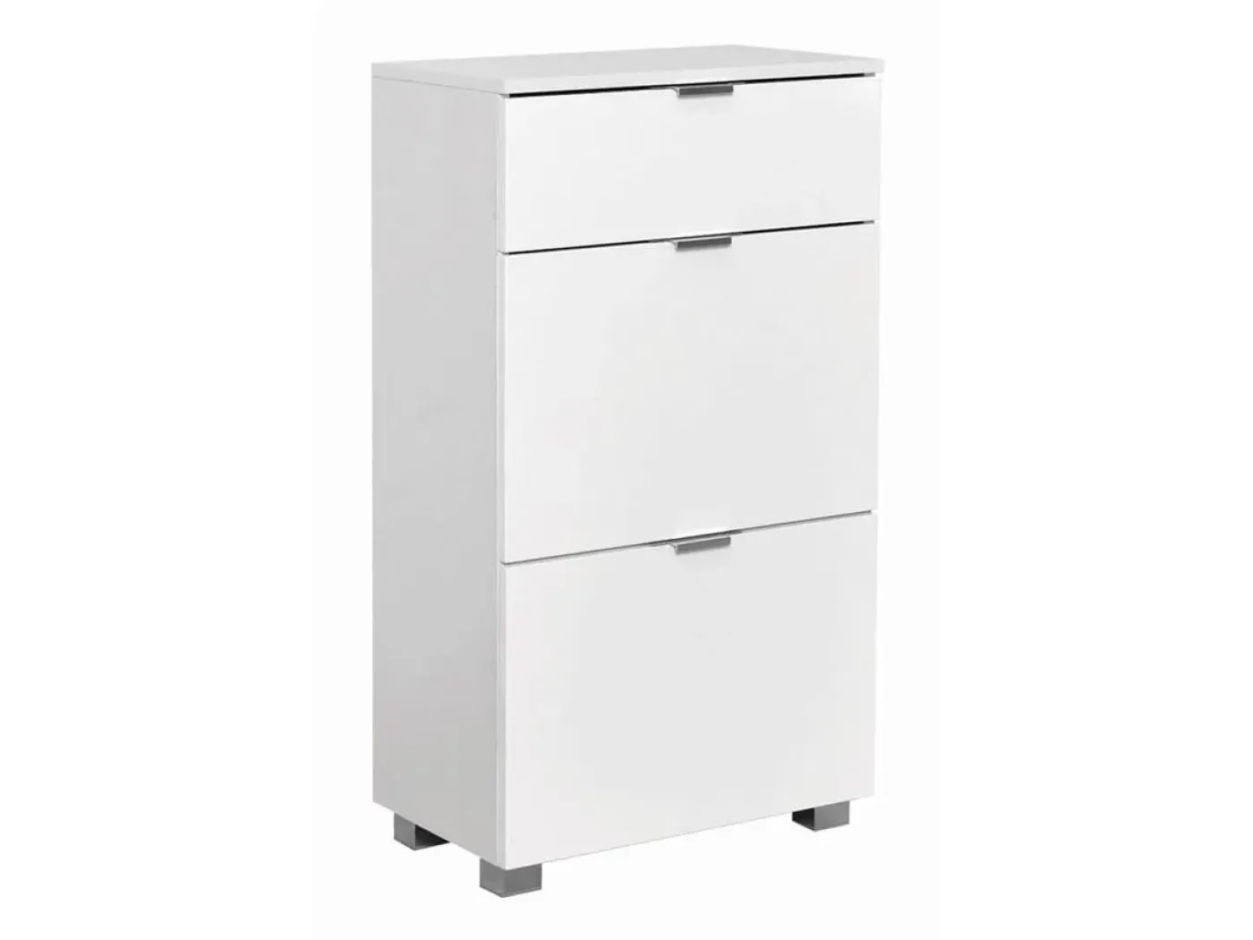 Elegantna omarica za čevlje Elegance 60 omogoča pregledno shranjevanje čevljev na majhnem prostoru. Obod omarice je izdelan iz iverne plošče debeline 18 mm v mat beli barvi. Ličnice omarice so v sijaj beli barvi. Omarica je postavljena na noge iz umetne mase, ki ščitijo element pred vlago iz tal, hkrati pa so tudi nastavljive po višini, kar omogoča stabilnost na neravnih tleh.