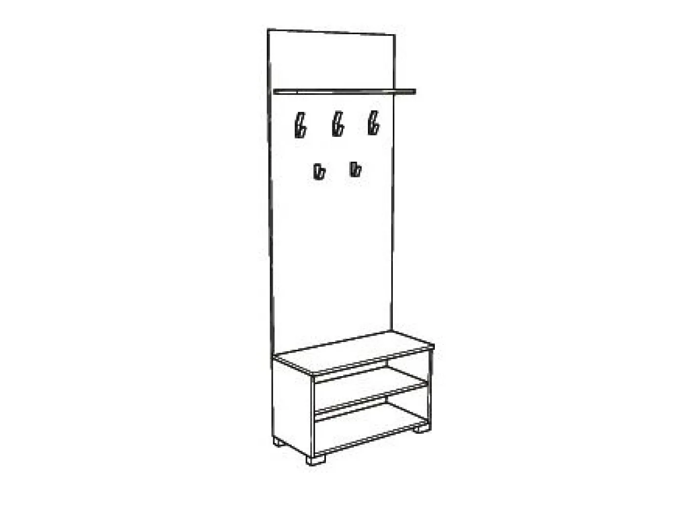 - ogledalo s polico (dimenzija 80x20x123 cm) - Na vrhu se nahaja ogledalo, pritrjeno na iverno ploščo, spodaj pa je odprta niša za odlaganje.