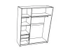 Notranjost omare je razdeljena na 2 dela. En del sestavlja palica za obešanje in ena široka polica. Drug del vsebuje 3 ožje police in dva notranja predala. Priložena je še ena ožja palica za obešanje, tako da lahko eno polico na ožjem delu zamenajte s prostorom za obešanje.