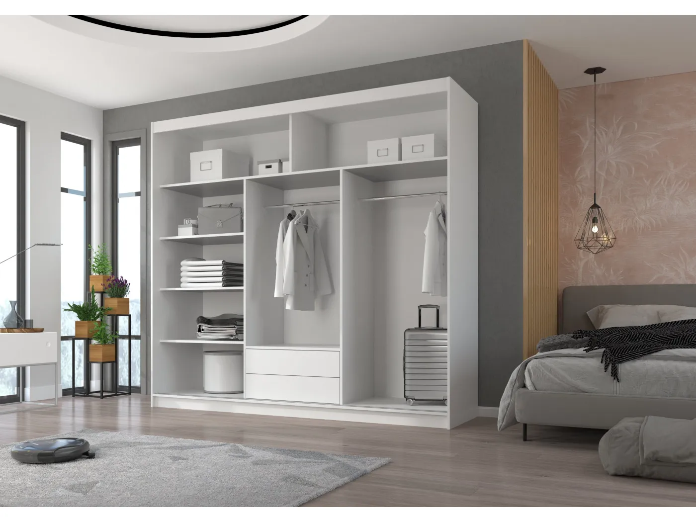 Drsna omara z ogledalom ERWIN 235 združuje praktičnost, modern dizajn in kakovostno izdelavo. Je odlična rešitev za spalnico, otroško sobo, predsobo ali garderobno sobo. Omara je izdelana iz iverne plošče debeline 16 mm in je na voljo v različnih barvah. Na sredinskih vratih se nahaja ogledalo.