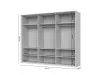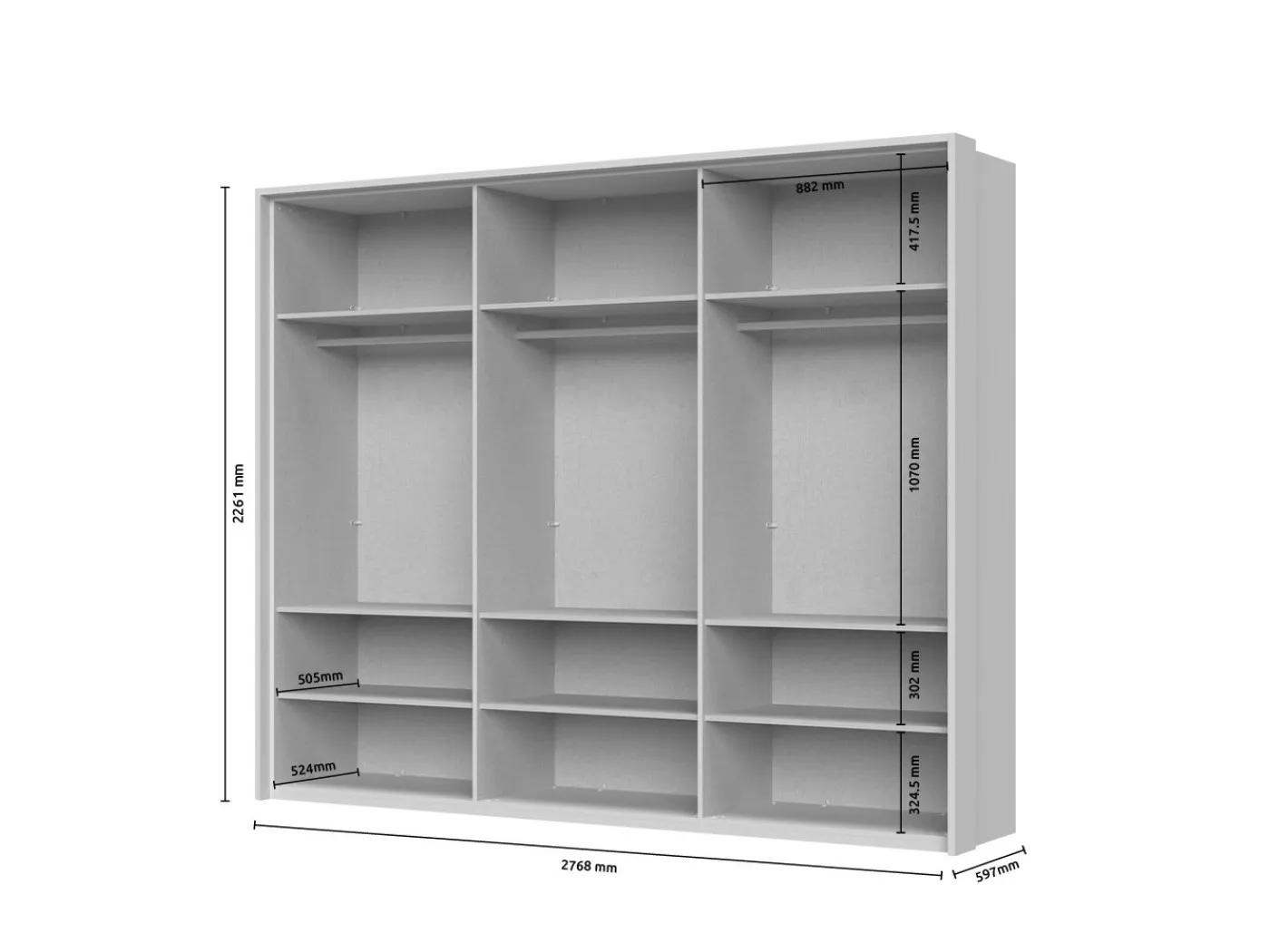 Notranjost omare je sestavljena iz 3 delov, vsak del je opremljen s 3 policami in obešalno palico.