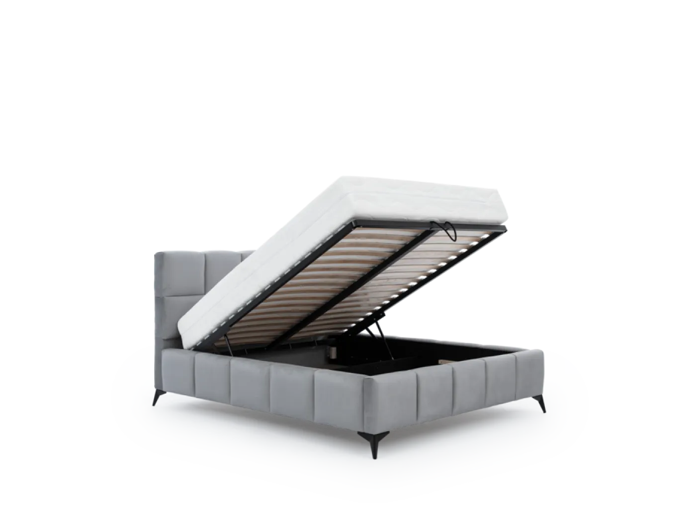 Dvižno posteljo Mist odlikuje modern dizajn, kakovostna izdelava in praktičnost. Postelja je opremljena s prostornim zabojem za posteljnino, do katerega dostopate z dvigom ležišča. Pri dvigu vam pomaga dvižni mehanizem, ki je vključen v ceno. V ceno je vključeno tudi posteljno dno z kovinskim okvirjem. Vzmetnica NI vključena v ceno. Postelja je postavljena na kovinske noge v črni barvi višine 13,5 cm. Postelja je na voljo v dimenzijah 140x200, 160x200 in 180x200 cm. Postelja je na voljo v različnih materialih in barvah.