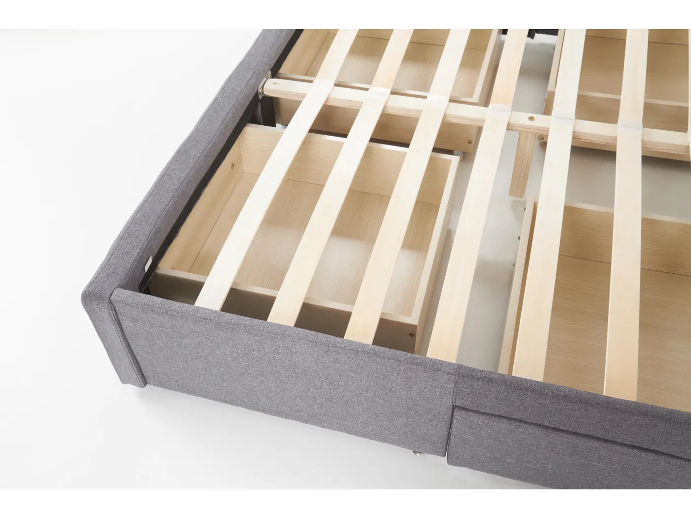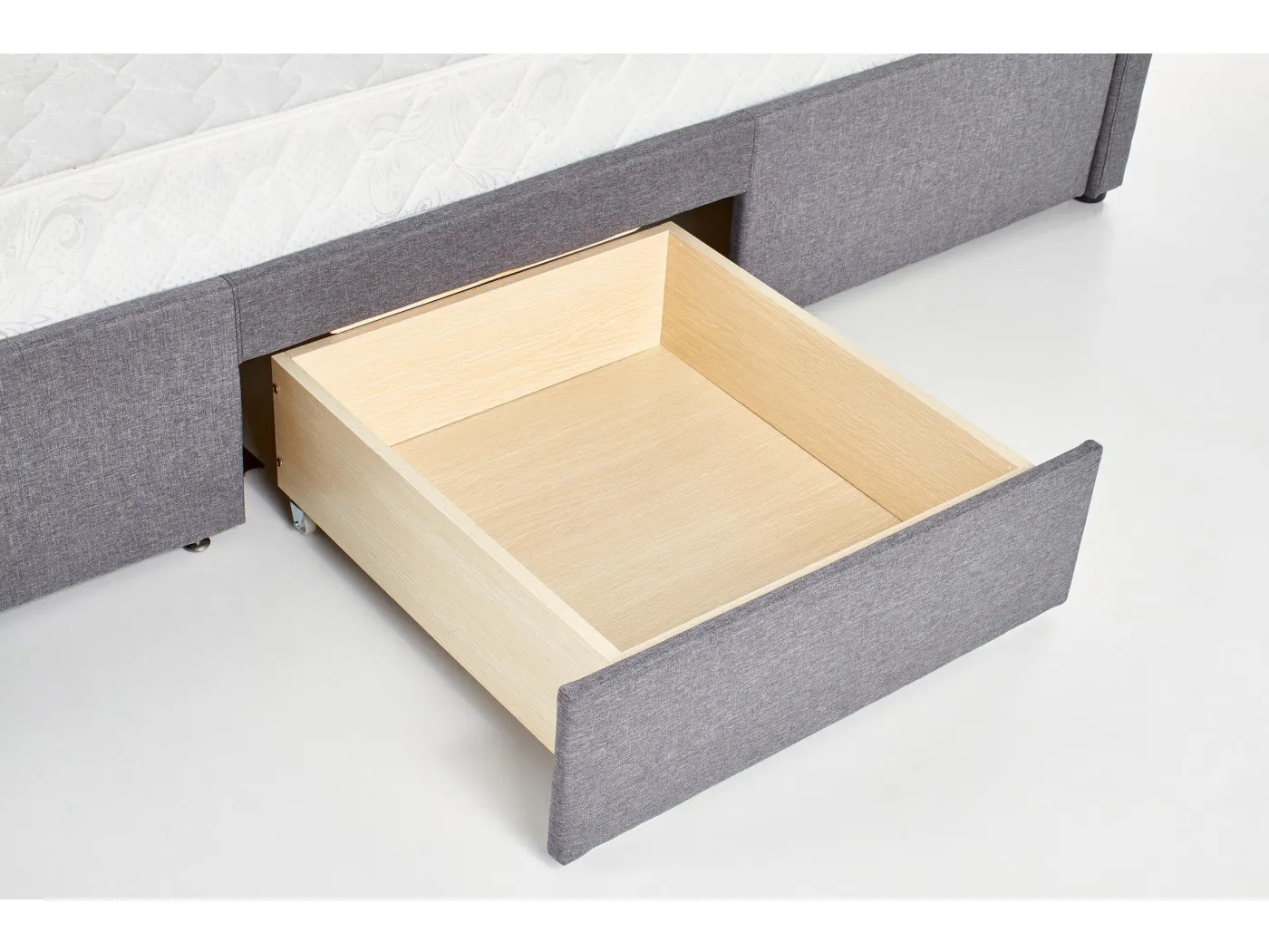 Postelja Betina je moderna in elegantna oblazinjena postelja. Za dodatno praktičnost skrbijo 4 predali. Postelja je oblazinjena v kakovostno sivo tkanino. Za lepši videz je vzglavje dodatno prešito.