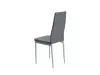 Enostaven jedilni stol Dinna II je oblazinjen v umetno usnje v sivi barvi. Noge so kovinske s premerom 25 mm in so prašno lakirane v srebrno barvo. Sedišče in naslon sta prešita z šivi v barvi stola.