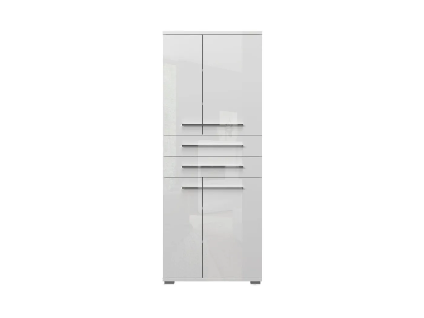 Visoka omara Piano V42 je moderna in elegantna rešitev za predsobo. Izdelana je iz iverne plošče debeline 18 mm in lakirana z UV lakom v sijaj beli barvi. Postavljena je na nastavljive nogice, ki omogočajo stabilnost tudi na neravnih tleh. Vrata in predali so opremljeni z mehanizmom za mehko zapiranje (soft-close).
