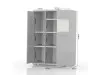 Širši del vitrine je zaprt z delno zastekljenimi vrati( stopsol kaljeno steklo), v notranjosti pa se nahajajo 3 police.