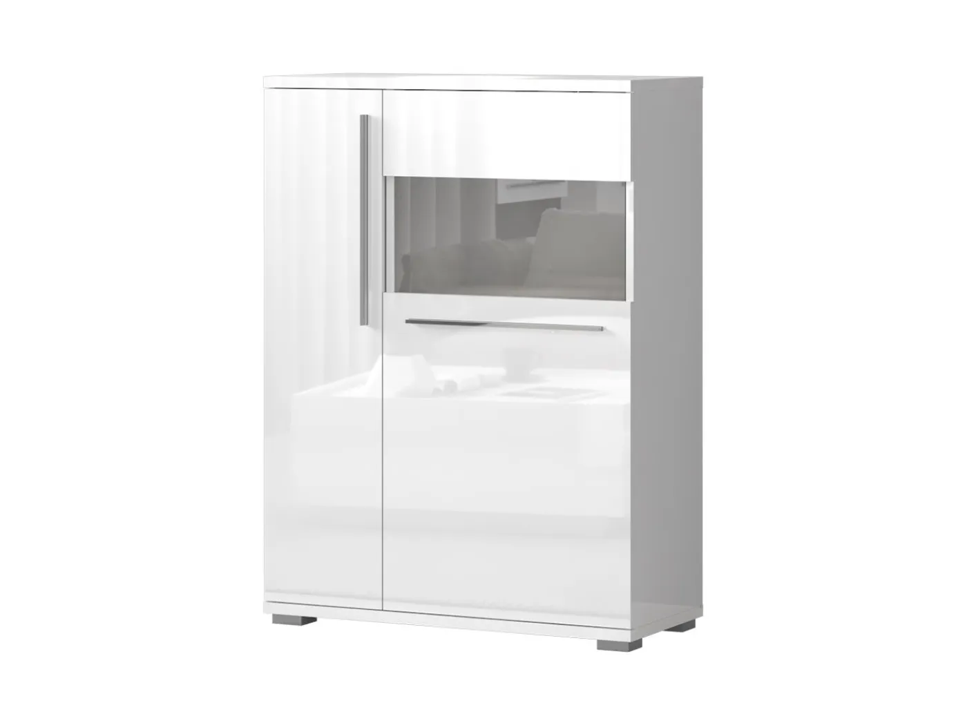 Ožji del vitrine je zaprt z vrati, v notranjosti pa se nahajajo 2 police.